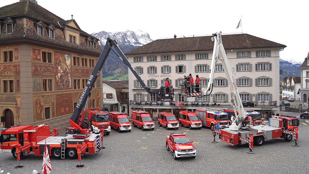 Geladene Gäste, Angehörige aus anderen Feuerwehr-Korps und interessierte Einwohnerinnen und Einwohner versammelten sich am Samstagvormittag auf dem Hauptplatz in Schwyz zur Einweihung zweier neuen Feuerwehr-Fahrzeuge. Sie ersetzen die in die Jahre gekommenen Vorgänger. Die Feierlichkeiten samt Apéro mit der Bevölkerung wurden musikalisch umrahmt durch die Feldmusik Schwyz.