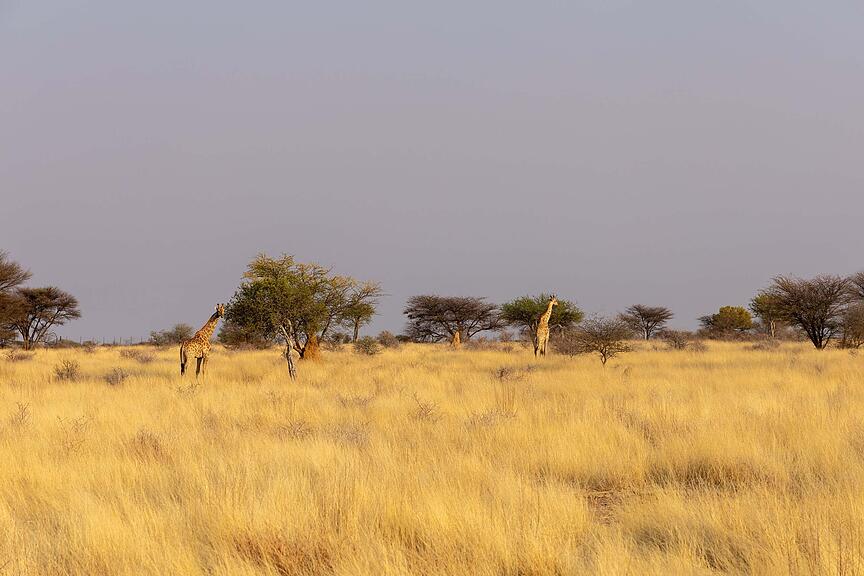 Sie verlassen heute Windhoek und fahren in Richtung Süden in die Zentralkalahari. In Rehoboth am Wendekreis des Steinbocks machen Sie einen Zwischenstopp bevor Sie zu Ihrer nächsten Unterkunft weiterfahren. Am Nachmittag gehen Sie auf eine Sundowner-Pirschfahrt und geniessen anschliessend Ihr Abendessen. Die Kalahari Wüste besteht aus unendlichen Dünenketten aus rotem Sand und wechseln sich mit grünen Tälern ab. Die Schönheit dieser Wüste verzaubert den Betrachter. Oryxe, Springböcke und Kudus sind hier zu Hause. Lassen Sie die Weite dieser Wüste sowie den spektakulären Sonnenuntergang auf sich wirken.