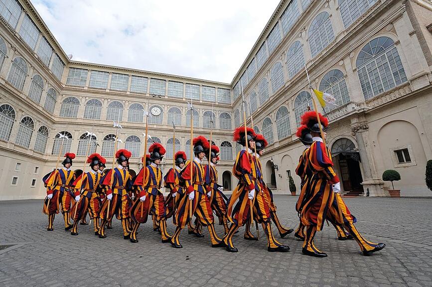 Am Nachmittag erwartet Sie eine besondere Begegnung. Im Jahr 1506 unter Papst Julius II. gegründet, ist die Schweizergarde ein Stück lebendige Geschichte. Das Söldnerheer mit der Hauptaufgabe, die Sicherheit des Papstes zu gewährleisten, empfängt Besucher ausschliesslich auf Einladung. Sie werden an der Porta Sankt Anna in Empfang genommen und durch den Kommandanten Christoph Graf oder seinen Vertreter begrüsst. Anschliessend gelangen Sie in das Quartier und besichtigen die sehenswerte Waffenkammer. Nachdem Sie beim Apéro im Kasernenhof Wissenswertes über das nur aus Schweizern bestehende Korps erfahren haben, werden Sie in einer Trattoria zum Abendessen erwartet.