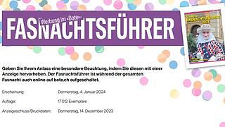 Bereits seit 2003 veröffentlicht der «Bote» den grössten und umfassendsten Fasnachtsführer im Kanton. Neben fasnächtlichen Neuigkeiten und vielen interessanten Fasnachts-Infos werden darin fast lückenlos alle Anlässe von Dreikönigen bis Aschermittwoch aufgeführt. Der Fasnachtsführer wird im «Boten» an über 16000 Adressen verschickt.