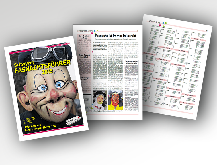 ...empfehlen wir Ihnen zusätzlich zum kostenlosen Agenda-Eintrag ein Inserat im Fasnachtsführer. Mit einem schön gestalteten Inserat stechen Sie aus den vielen gelisteten Anlässen heraus.