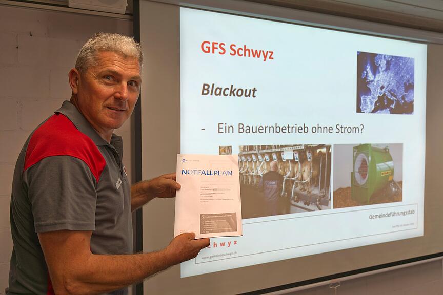 «Wir müssen das Undenkbare durchdenken», sagt der Schwyzer Gemeinderat Ivo Tschümperlin, Ressortvorsteher Sicherheit, im Hinblick auf die sich abzeichnende Energiekrise im Winter. Kari Pfyl, Stabschef des Schwyzer Gemeindeführungsstabs, hatte schon bei Amtsantritt vor vier Jahren das Szenario eines grossflächigen Stromausfalls auf dem Radar. «Entsprechend gut sind wir jetzt vorbereitet», sagt Gemeinderat Tschümperlin zufrieden.