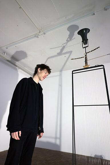 Ein Beispiel dafür ist Gian Kägi, der dieses Jahr bei Jugend Kunst Schweiz ausstellte. Er präsentiert in der Ausstellung eine konzeptuelle Arbeit, in der die Skulptur wie eine bewegte Zeichnung wirkt, die sich musikalisch entfaltet und in der die Linie als Stimme erfahrbar wird.