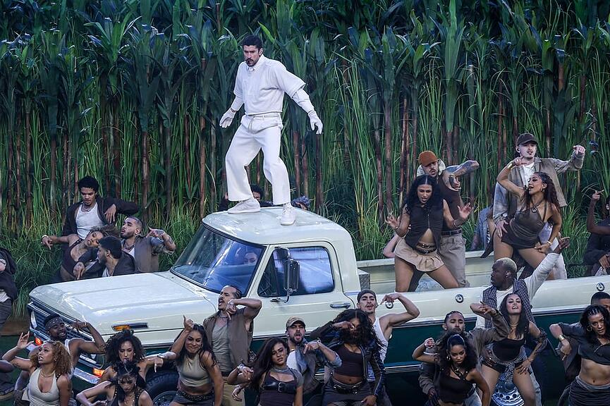 Die Super-Bowl-Halbzeitshow, bei der Bad Bunny mit Songs wie «NUEFAYol», «CAFé CON RON» und dem Hit «Tití Me Preguntó» durch seine musikalische Karriere führte, setzte auf starke Bilder und viel Bewegung. Auf der Bühne wurden Szenen aus dem Alltag Puerto Ricos nachgestellt: traditionelle Haus- und Ladenfassaden, mobile Essensstände, Verkäufer mit Getränken und Speisen, Zuckerrohr-Plantagen. Dutzende Tänzer und Akrobaten füllten das Spielfeld und feierten mit ihrer Choreographie die Kultur, Geschichte und das Lebensgefühl der Karibikinsel.