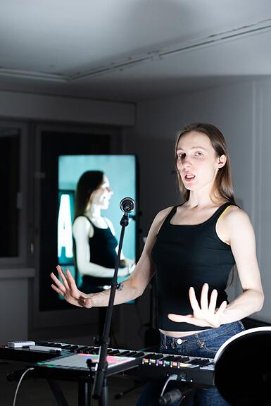 Ein Teil der Werke ist speziell für diese Schau kreiert worden. Daria Blum arbeitet mit Performance, Video, Musik, Text und Fotografie. Häufig steht ihr eigener Körper im Zentrum, den sie über Stimme, Bewegung und Sprache einsetzt. Sie entwickelt wiederkehrende Figuren und Rollen, die zwischen Alltag, Erinnerung und Inszenierung agieren und Emotionen sowie Identitäten erforschen.