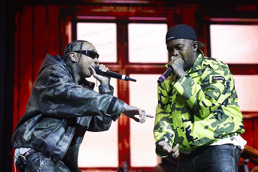 Rapper Tyga und Mustard sind so cool, dass sie trotz Coachella-Temperaturen von tagsüber über 30 Grad dick eingepackt performten.