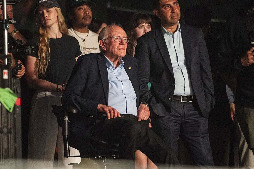 Junggeblieben: Bernie Sanders hat sich auch unters Festival-Volk gemischt – wenn auch in ganz normalen Outfit.