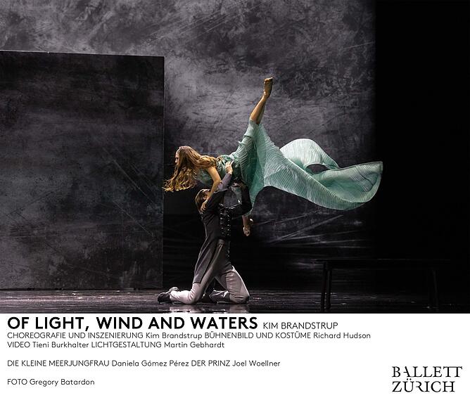 Für seine Uraufführung verwebt der dänische Choreograf und Regisseur, Kim Brandstrup, «Die Schneekönigin», «Die kleine Meerjungfrau» und «Der Schatten» zu «Of Light, Wind and Waters». Zu Beginn zieht gleissendes Licht in den Bann. Mittendrin der junge Andersen, der verspottet wird. Er nimmt ein Bett als Bühne, versucht sich als Tänzer und Schauspieler, während ihn Leute runterkippen. Doch er findet das Gleichgewicht schnell wieder; seine Mutter unterstützt ihn.
