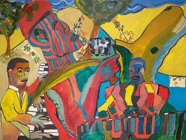 Aretha Franklin hängt neben dem Fenster, Dizzy Gillespie im Korridor. In einer Ecke stapeln sich Thelonious Monk, Nina Simone, Miles Davis; Charlie Parker, Billie Holiday, Nat King Cole. Finger auf Tasten, vervielfachte Saxofone, Schlagzeuge. Man sieht den Rhythmus, am liebsten würde man sich diesen Bildern entlanghören.