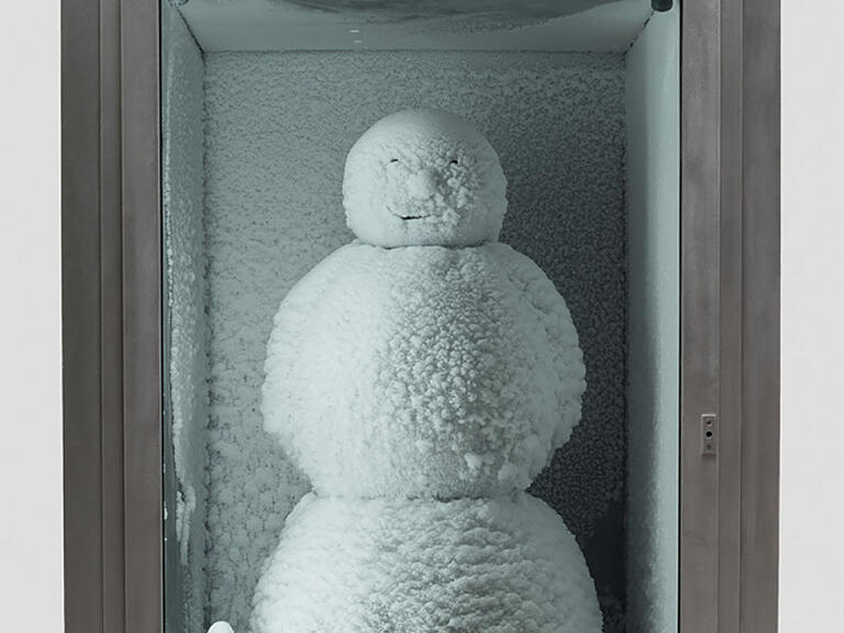 Sie sieht aus wie ein gewöhnlicher Schneemann, wird in einem Kühlkasten aber mit aufwendiger Technik betrieben. Grundlage ist eine mit Kühlflüssigkeit gefüllte Kupfer-Figur. Auf ihr entsteht eine Schneeschicht, wenn die Luftfeuchtigkeit im Kasten erhöht wird. Das Schneemann-Lächeln wird jeden Morgen neu geformt.