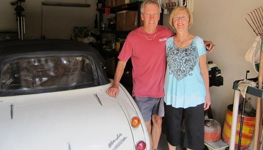 Die glücklichen Russels mit ihrem wiederaufgetauchten Sportwagen