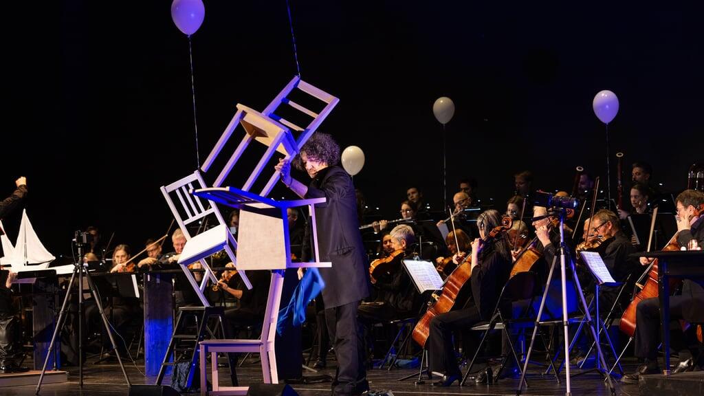 Ende der Pause. «Was haben die grad zu sich genommen?» Das gesamte Luzerner Orchester Santa Maria schläft – auf der Bühne. Das Cello quer über den Körper, die Geige schlaff herabhängend, der Kopf eines Musikers direkt im Schlagzeug versunken. Dirigent Droujelub Yanakiew liegt in bequemer Seitenlage auf seinem Podest. Da betritt Magier Alex Porter die Bühne und erweckt – «Boléro» von Ravel oblige – als Erstes den Trommler zum Leben.