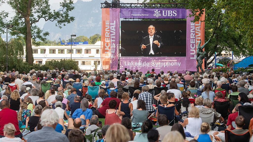 Was im All-inclusive-Urlaub das Belegen der Poolliegen ist, das ist beim Eröffnungsabend von Lucerne Festival das Platzieren der Campingstühle auf der Inseli-Wiese. Schon eine halbe Stunde vor Beginn der Übertragung ist sie randvoll. Und wer später dran ist, muss zwangsläufig auf die flankierenden Wege ausweichen.