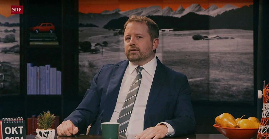 Als der immer harmlos freundlich in die Kamera blickende Ostschweizer Gabriel Vetter sich am Sonntagabend zu Wort meldete, erschien er mir wie ein grimassierendes Marsmännchen. Nicht, weil er wie eines aussah – wer will schon so genau wissen, mit was für einer Auftrittskompetenz und in welcher Optik so ein Marsmännchen sich vor eine Fernsehkamera stellen würde? Aber Vetters Gags wirkten von Minute eins an arg neben der Tonspur, Bild und Ton führten ein Eigenleben. Fixierte man während der Sendung die hässliche Kuh-Vase zur Linken auf Vetters Pult – was für ein Gestrüpp steht da eigentlich drin? -, kam man trotzdem noch in den Genuss einer soliden Sendung, die Vetter und Fabienne Hadorn dieses Mal ohne Sven Ivanic bestritten.
