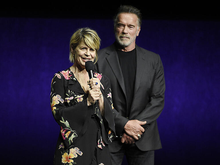 Neben Alt-Star Arnold Schwarzenegger, der durch die Cyborg-Figur berühmt wurde, kehrt Linda Hamilton nach 28 Jahren in ihrer ikonischen Rolle als Sarah Connor zurück. In dem düsteren Trailer mit Explosionen und Verfolgungsjagden greift sie kämpferisch zur Waffe.
