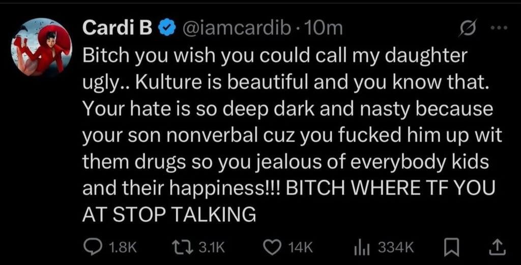 Cardi B sagte vergangene Woche aus, sie sei damals mit ihrem ersten Kind im vierten Monat schwanger gewesen. Die Schwangerschaft sei noch nicht öffentlich gewesen – selbst ihren Eltern habe sie noch nicht davon erzählt. Die Praxis sei eigens für sie geschlossen worden. Die Sicherheitsmitarbeiterin habe sie dennoch in den fünften Stock verfolgt und heimlich gefilmt. Cardi B hatte Angst gehabt, dass ihre Schwangerschaft publik gehen würde. Als sie die Frau zur Rede stellte, sei der Streit eskaliert. Zu körperlicher Gewalt sei es am Ende aber nicht gekommen.