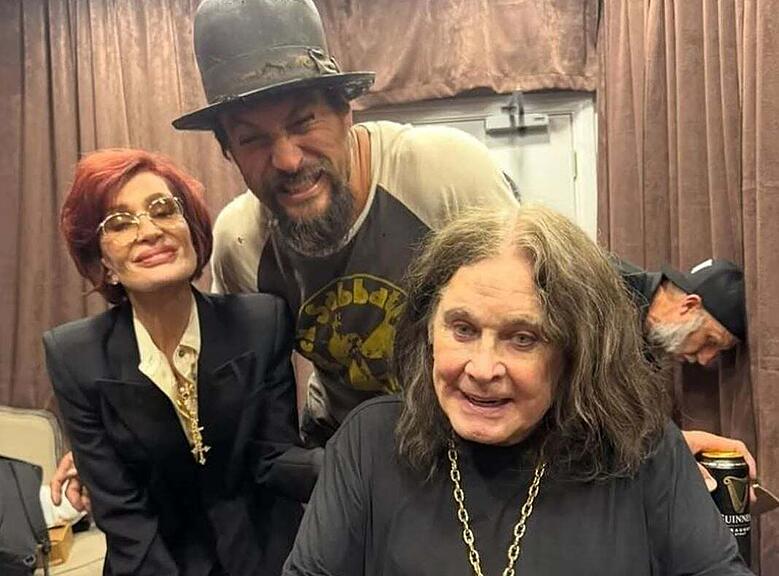 Eines der letzten Bilder: Ozzy mit Sharon und Schauspieler Jason Momoa bei seinem Abschiedskonzert am 5. Juli 2025 in Birmingham.