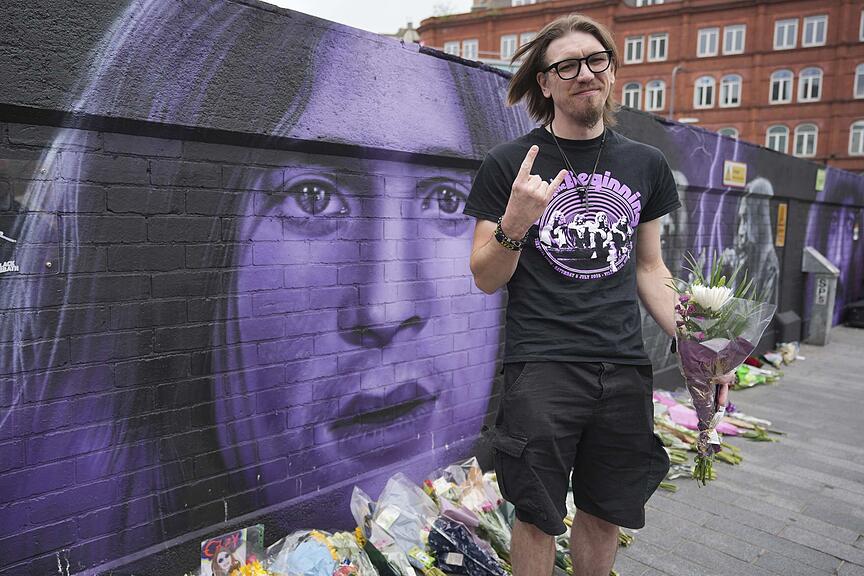 Fans legten nach seinem Tod Blumen zu einem Graffiti des Musikers in dessen Heimatstadt Birmingham.