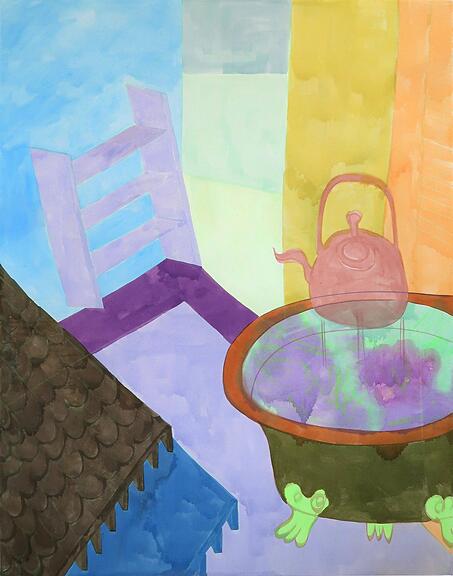Ausgangspunkt der Werkserie ist eine langjährige Faszination für japanische Holzschnitte, ihre Reduktion, Raumorganisation und präzise Farbgebung. Wiederkehrende Motive wie Badewannen, Tische, Teekessel oder Becken fungieren nicht als Gebrauchsgegenstände, sondern tragen räumliche und psychische Bedeutungen. (zvg/are)