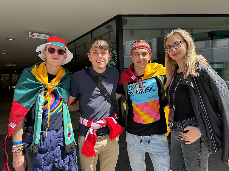 Airidas (links) kommt aus Litauen und ist grosser ESC-Fan. 2012 lernte er über ein Online-Forum Karolis (zweiter von rechts), auch aus Litauen, kennen. Später stiessen Aleksander aus Dänemark (zweiter von links) und Edita zur Gruppe hinzu. Gemeinsam reisen sie in die Gastgeber-Länder./>