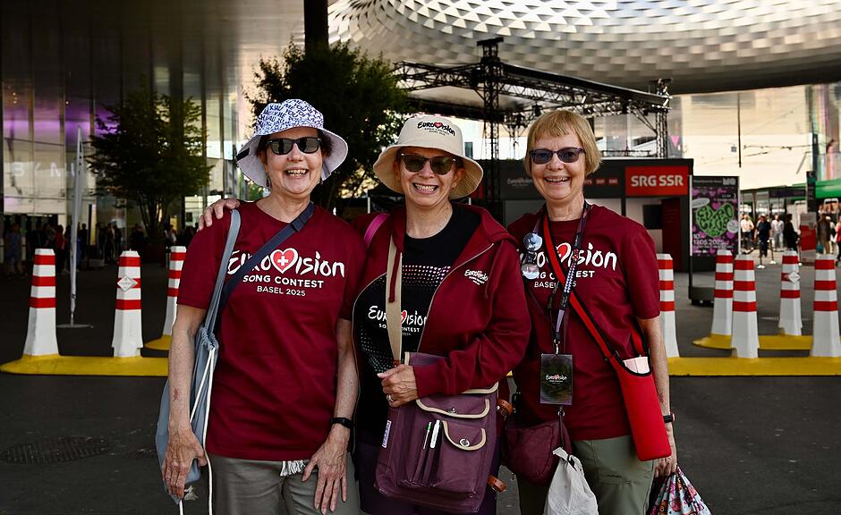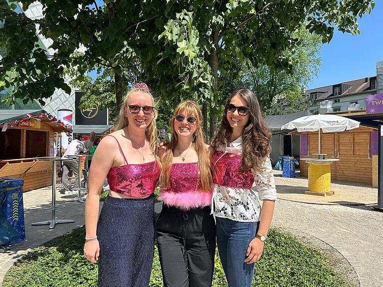 Elena (links), Nina (Mitte) und Romina sind für den ESC aus Zürich angereist und bleiben bis Sonntag in Basel./>