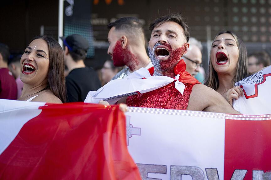 Jubeln für Malta! ESC-Fans vor der St. Jakobshalle./>