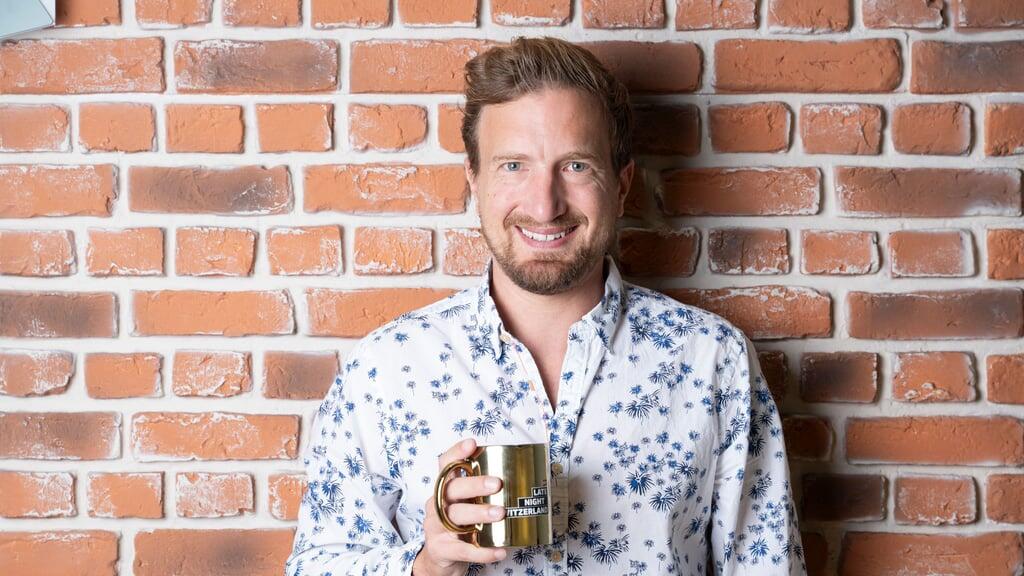 Presslufthammer, Bagger, Baulärm – vor den Büros von «Late Night Switzerland» wird gerade die Strasse aufgerissen. Mittendrin: Stefan Büsser, Helm auf dem Kopf, ein Grinsen im Gesicht. «Wir haben gedacht, wir nutzen die Szene gleich», sagt er und stellt sich lachend vor den Fotografen.