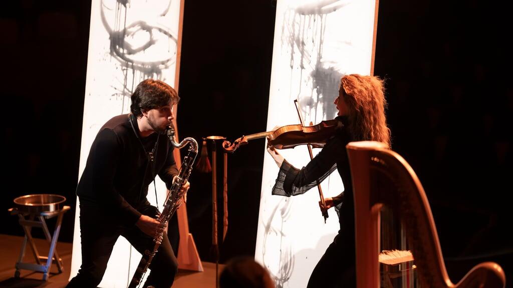 Charlotte Hug improvisierte im Late-Night-Konzert mit Stimme, Pinsel und Bratsche. Dabei blieb sie stets im Austausch mit ihren Mitmusikern.