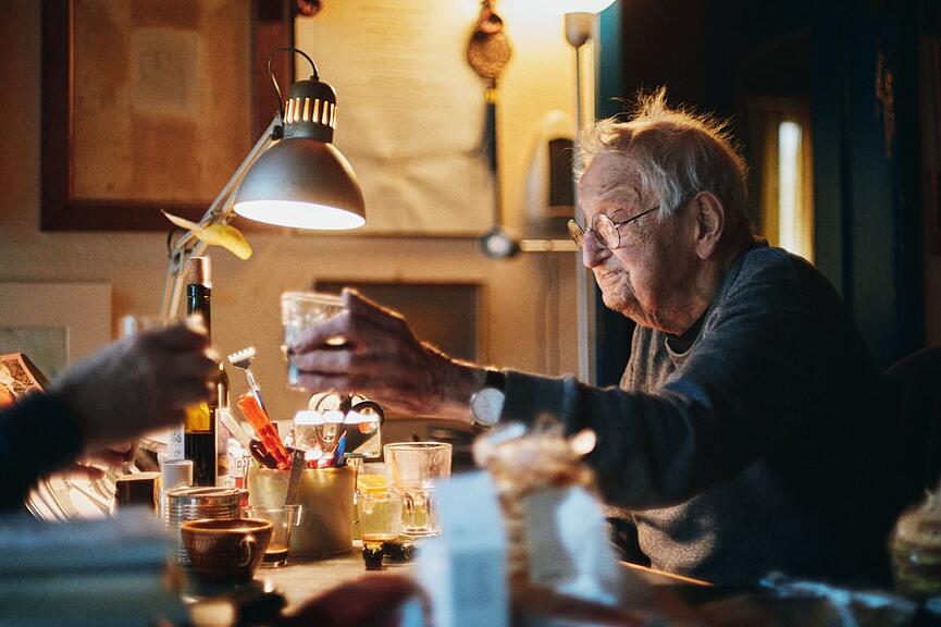 Sein Pessimismus ist ein bisschen sein Markenzeichen. Und trotzdem beschreibst du deinen Besuch als heitere Begegnung.