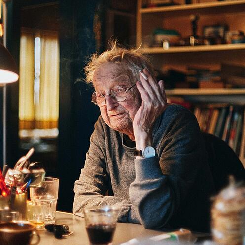 Ich stand mit meinem Journalistenkollegen Pascal Moser und dem Fotografen Valentin Hehli vor der Türe seines schlichten Reihenhäuschens. Ich drückte die Klingel – und es passierte lange nichts. Nach einer Minute wiederholte ich das Klingeln, dann hörten wir Peter Bichsel leise rufen. Wenig später öffnete er die Türe und entschuldigte sich sofort. Es sei nicht mehr so gut zu Fuss. In seinem Haus hat er überall Handläufe als Stützen. Aber es war sofort spürbar, dass er sich hier zu Hause wohlfühlt.