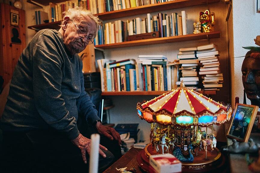 Hansruedi, von deinem Besuch vor wenigen Wochen hast du viel Interviewmaterial mitgebracht. Berührt hat mich zum Beispiel eine Szene, als Peter Bichsel ein Modellkarussell zeigte.