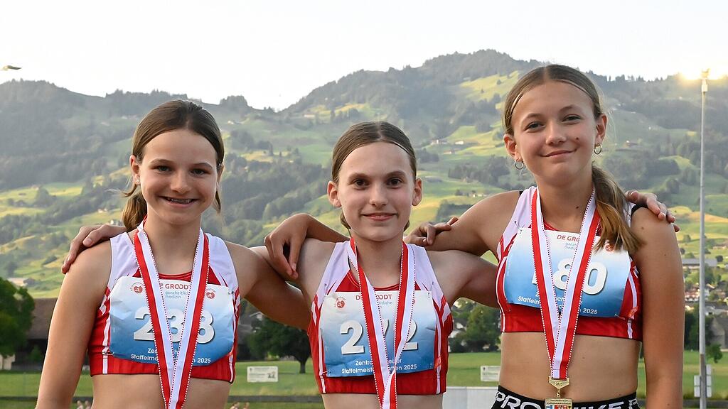 Céline Meier (von links), Madlaina Wiederkehr und Nina Casagrande stellten über 3x600 Meter einen Schweizer Rekord auf.