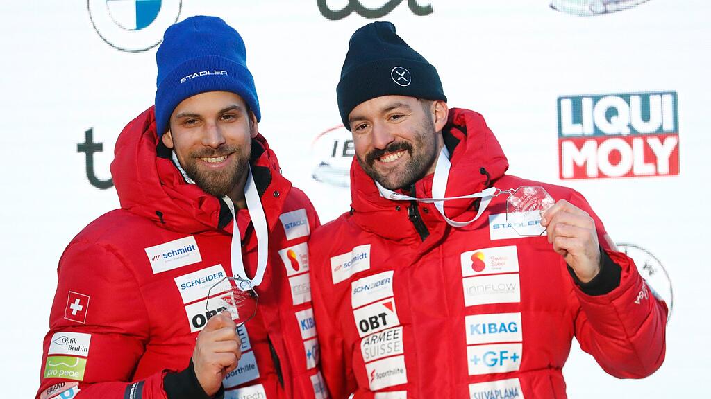 Der Schwyzer Bobpilot Michael Vogt (rechts) boykottiert die Rennen in Altenberg. Vor knapp zwei Jahren erlitten Vogt und sein ehemaliger Anschieber Sandro Michel (links) auf der Strecke einen schlimmen Sturz. Kurz vor diesem Ereignis hatten die beiden noch EM-Silber gewonnen.