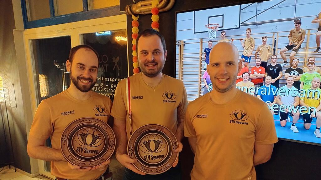 Christoph Gwerder (links) und Martin Gwerder (Mitte) wurden zu Ehrenmitgliedern ernannt. Stefan Aschwanden (rechts) ist neuer Präsident.