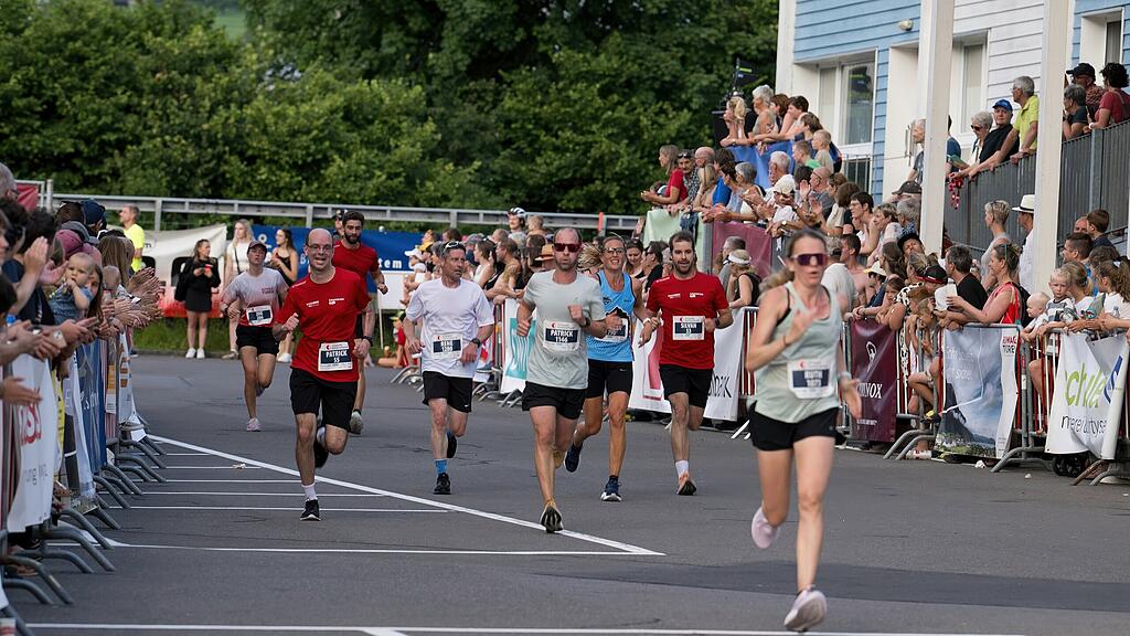 Finisher des letzten Jahres beim Zieleinlauf nach zehn Kilometern Rennstrecke rund um den Lauerzersee.