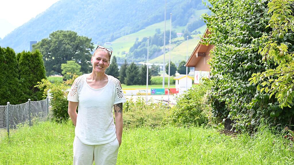 Sandra De Pol im Garten ihrer Eltern in Ibach: In den 1990er-Jahren spielte sie in der Abwehr des Schweizer Nationalteams.