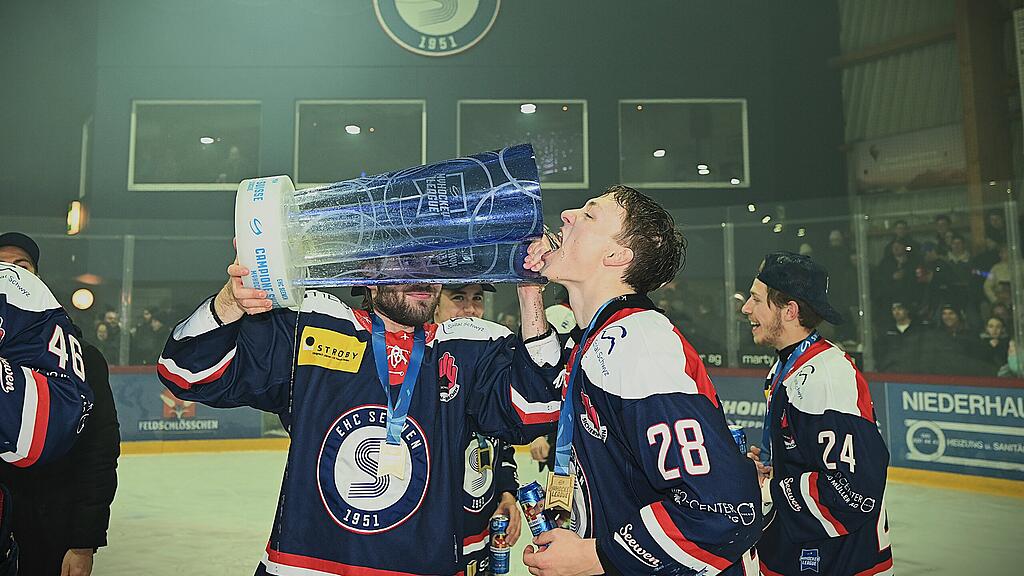 Noch am Sonntag stand der EHC Seewen mit dem Rücken zur Wand. Noch eine weitere Niederlage, und es hätte das Ende der Serie zu Ungunsten der Seebner bedeutet – vorbei der Traum der Titelverteidigung. Doch Seewen zeigte Charakter, es drehte die Finalserie gegen Hockey Huttwil und konnte sich am Dienstagabend dank eines 5:1-Sieges erneut zum Schweizer Meister im Amateur-Eishockey krönen lassen. Es ist der zweite grosse Titel nach 2025.