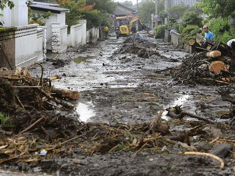 Nach Angaben des Japanische Meteorologischen Dienstes erreichten die Regenfälle, die am Donnerstagmorgen begonnen hatten, in einigen Teilen der Insel "nie dagewesene Ausmasse". Für den Norden Kyushus wurde vor weiteren Erdrutschen und Überflutungen gewarnt.
