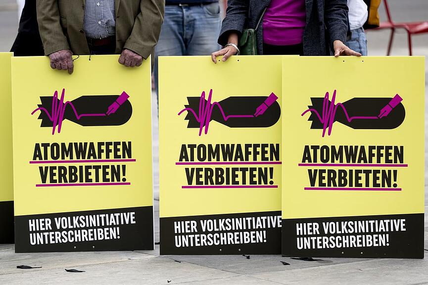 Hinter der Initiative steht eine Allianz aus 32 Friedens- und Umweltorganisationen, gesteuert von der GsoA. Die Initianten wollen, dass die Schweiz dem Atomwaffenverbotsvertrag der Uno beitritt, der die Atomwaffen weltweit ächten will. Der Bundesrat hatte sich bisher geweigert, dem Vertrag beizutreten.