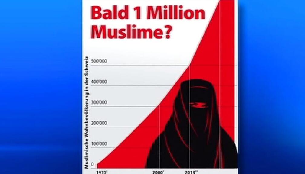 Eine steile Kurve, eine verhüllte Frau und die Schlagzeile «Bald eine Million Muslime?» - so sieht das Plakat des Egerkinger Komitees aus, mit dem es für die SVP-Masseineinwanderungsinitiative wirbt.