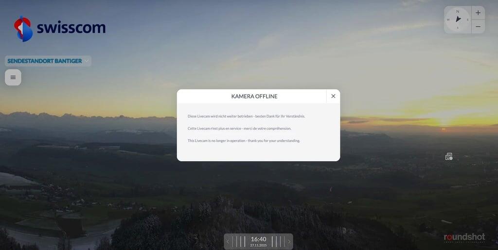 Immerhin: Nicht alle Kameras laufen über die Swisscom. Mittlerweile betreiben auch Gemeinden oder Organisationen Webcams in den Bergen. Von der Abschaltung betroffen sind etwa die Rigi, Chasseral, Uetliberg, Bantiger, Aroser Weisshorn, San Salvatore und weitere, berichtet SRF. Die Kamera auf dem Bantiger liefert schon seit Ende November keine aktuellen Bilder mehr.