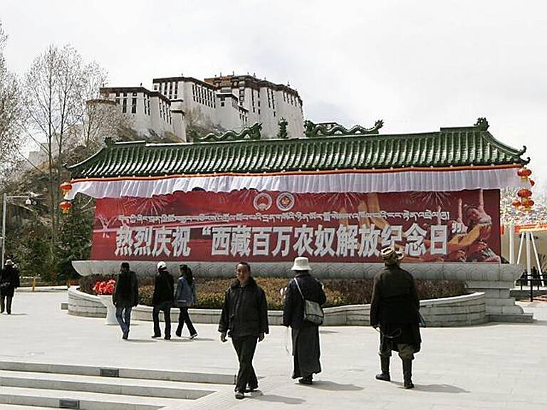 Vor dem Palast waren zahlreiche Flaggen der Volksrepublik gehisst. "Die Flagge mit den fünf Sternen wird immer über Tibet wehen", sagte der tibetische Sekretär der Kommunistischen Partei, Zhang Qingli.