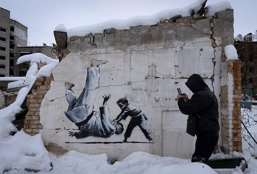 Wie kamen die Reuters-Journalisten Banksy nun definitiv auf die Schliche? Laut dem Bericht war eine Ukraine-Reise entscheidend. Im Dezember 2022 tauchten in dem kriegsgebeutelten Land Werke von Banksy auf. In einem Fall, im Dorf Horenka, das ein wenig ausserhalb von Kiew liegt, wurden die Ersteller eines Graffitos von Zeugen beobachtet. Diese berichteten, wie zwei maskierte Personen innert weniger Minuten ein Kunstwerk auf von russischen Bomben zerstörte Ruinen brachten.