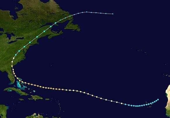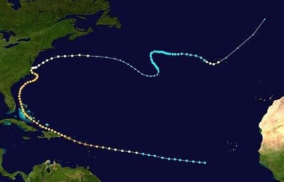 Von dort schien er sich zunächst ins Meer hinauszubewegen, drehte dann aber plötzlich nach Nordosten und traf am 18. August bei Hatteras im US-Staat North Carolina an Land. Schwer getroffen wurden vornehmlich die Karibikinseln Montserrat, St. Croix, St. Kitts und Guadeloupe, aber auch Puerto Rico. Dort waren aufgrund der Regenfälle etwa 250’000 Menschen ohne Nahrung und Unterkunft.
