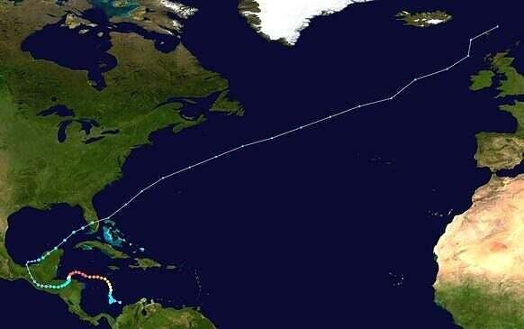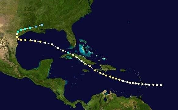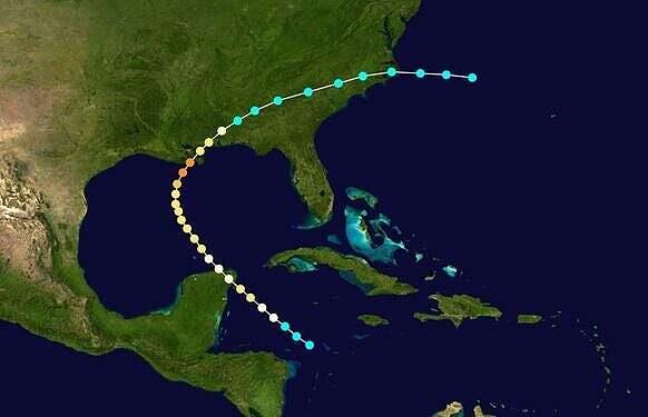 Zuvor war der Wirbelsturm, der östlich der Kleinen Antillen entstanden war, über Barbados und Kuba hinweggezogen und hatte sich dabei abgeschwächt. Über dem Golf von Mexiko nahm er dann erneut Fahrt auf. Nachdem er auf Land getroffen war, schwächte er sich schnell ab, drehte nach Nordosten und löste sich über Mississippi auf.