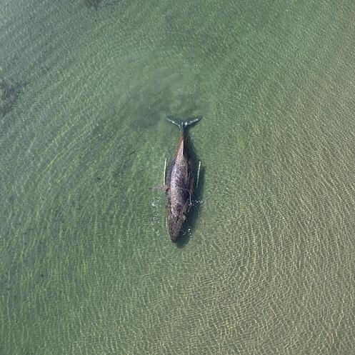 Der Zustand des Wals ist nach Angaben von Wasserschutzpolizei und Greenpeace unverändert. Die Rettungsversuche waren am Mittwoch eingestellt worden. Den Fachleuten und Meeresschützern vor Ort zufolge wird das Tier in dieser Bucht wohl sterben. Wie lange es noch überleben wird, lässt sich nach Einschätzung der Experten nicht vorhersagen. Am Donnerstagvormittag erkundete bereits ein Vermessungsboot die Umgebung des Wals, um eine mögliche Bergung des Buckelwals vorzubereiten. (dpa)