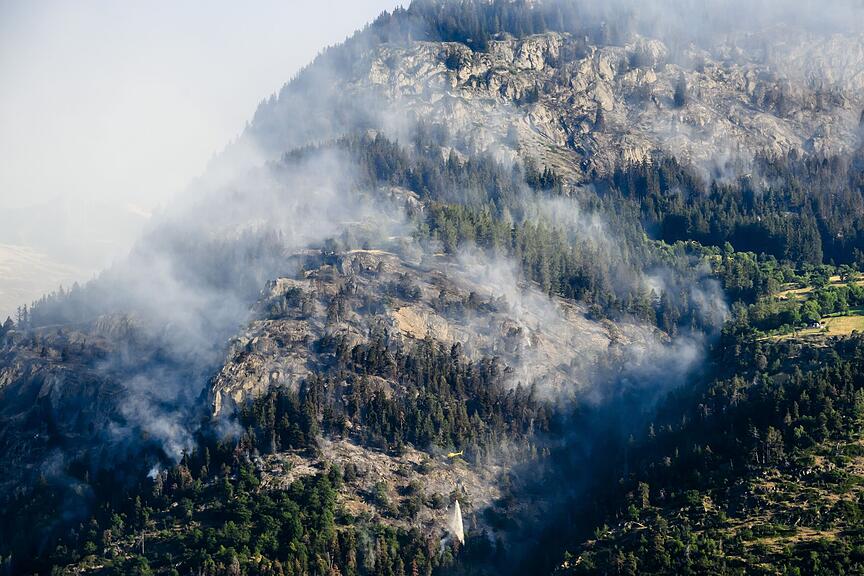 Der Regen, der in der Nacht fiel, brachte keine Entspannung. Im Gebiet des Waldbrands seien bis Mittwochmorgen nur eins bis fünf Millimeter Niederschlag zusammengekommen, sagt Marina Bianca Ganci von Meteotest AG gegenüber dem Walliser Boten . Der Regen sei «eher ein Tropfen auf den heissen Stein» gewesen.
