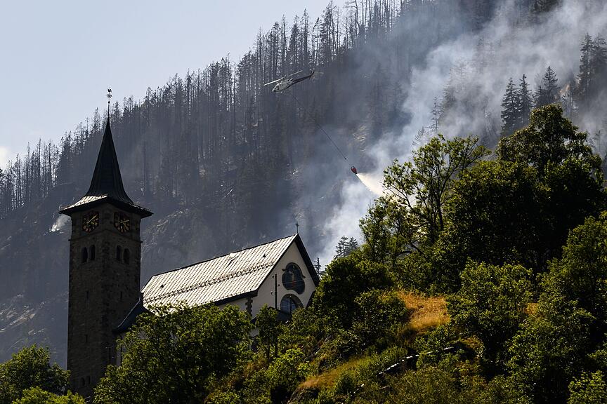 Sorge bereitet den Verantwortlichen die Wetterprognose: Gerade für den Freitagnachmittag sei diese «ungünstig», da starke Gewitter erwartet werden. Diese könnten im schlimmsten Fall neue Brände entfachen. Kommt es zudem zu starkem Regen, besteht die Gefahr von Murgängen und Steinschlägen. (chi)