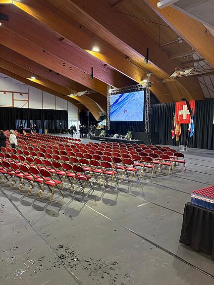 Am Rathaus von Martigny hängt die Fahne auf halbmast - wie vielerorts in der Schweiz. Doch nimmt die Unterwalliser Stadt heute eine spezielle Rolle ein: Sie ist Schauplatz der Gedenkfeier mit kantonalen, nationale und internationalen Politikern. Diese kommen jedoch nicht in die Innenstadt, sondern aus Platzgründen auf das eine Kilometer entfernte Messgelände nahe der Bahngeleise. Über 1000 Gäste finden dort Platz. In der Kirche gleich neben dem Ratshaus, der Notre Dame de la Visitation, hätten maximal halb so viele Platz gehabt. (jus)