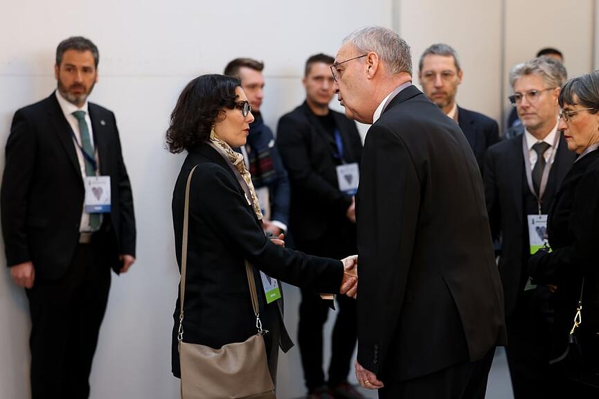 Auch Emmanuel Macron ist nun im Saal. In wenigen Augenblicken startet der Gedenkanlass. (mg)